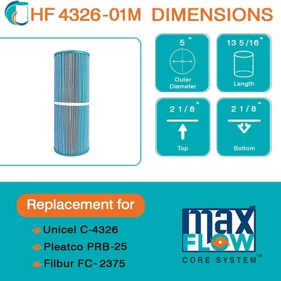 - SEAMLESS COMPATIBILITY: Crafted with precision, this filter is seamlessly compatible with Unicel: C-4326, PRB25, Filbur: FC-2375, Dynamic Series I RDC-25, I RDC-25S, Dynamic Series II & II RTL/RCF-25, Dynamic Series IV-DFM, DFML, and Waterway 25 In-Line