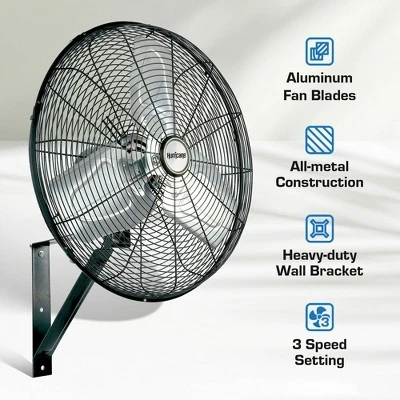 Be blown away by the reliable performance of the 2-pack Hurricane 20-Inch Pro Commercial Grade Classic Oscillating Wall Mount Fan, your solution for powerful and space-efficient air circulation. Whether it’s your home, greenhouse, garage, or workshop, these heavy-duty wall fans are designed to deliver exceptional performance. Easily install it with the included heavy-duty wall bracket and hardware, saving valuable floor space.Crafted with rugged all-metal construction and a sleek black powder-coated finish, these fans exude durability and style. The fan blades, constructed from lightweight yet sturdy aluminum, ensure both efficiency and longevity. Rest easy knowing the thermally protected motor is equipped to automatically shut off in the event of overheating, providing an added layer of security. Take control of your comfort with the oscillating fan’s versatile features. Choose from 3-speed settings, allowing you to tailor the airflow to your preference. The oscillation controls and adjustable tilt provide a customizable experience, ensuring every corner of your space receives optimal ventilation. With an impressive 4,600 CFM and 1,100 RPM, this fan is a powerhouse, swiftly and efficiently circulating air. The included 6-foot, 120-volt power cord adds convenience, giving you flexibility in placement.Enhance your environment with the 2-pack 20-Inch Pro Commercial Grade Oscillating Wall Mount Fan from Hurricane where performance, durability, and versatility converge for superior air circulation in any space.
