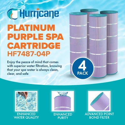 Upgrade your spa experience with the Platinum Purple Spa Filter Cartridge Replacement, which is compatible with specific models for superior use. Designed for optimal performance, this premium filter cartridge ensures crystal-clear water, maintaining a hygienic and enjoyable spa environment. The platinum purple point bond enhances filtration by capturing even the smallest particles, while the robust build guarantees durability and longevity. Engineered to fit perfectly into your spa system, this replacement filter cartridge boasts a high-flow core, maximizing water circulation and reducing strain on the pump. With a uniform pleat design, the cartridge offers a larger filtration surface area, effectively removing dirt, debris, and contaminants. The easy-to-install design allows for quick and hassle-free replacement, ensuring your spa is back up and running in no time. Regular use of the Platinum Purple Spa Filter Cartridge Replacement will extend the life of your spa’s components and enhance the overall water quality, providing a luxurious and relaxing experience. Invest in the best for your spa with this top-tier replacement filter cartridge. Enjoy the peace of mind that comes with superior water filtration, knowing that your spa water is always clean, clear, and safe. Whether you’re soaking after a long day or entertaining guests, this filter ensures your spa remains a haven of relaxation and wellness. Upgrade your spa maintenance routine today with the Platinum Purple Spa Filter Cartridge from Hurricane and experience the difference in water quality and performance.