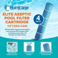 Raise the level of your pool and spa filtration system with the Hurricane Advanced Pool and Spa Filter Cartridge Replacement, designed to fit Unicel C-7494, PA131, Filbur FC-1227, Hayward SwimClear C5030, C5025, C5020, Hayward Super-Star-Clear C5000, Hayward CX1280RE, Aladdin 23101, Baleen AK-60550, SD-01063 and other compatible models.Engineered with precision, this filter cartridge features exclusive turquoise end caps, ensuring top-notch quality that surpasses original manufacturer standards. Measuring 32.75 inches in length, 7 inches in outer diameter, 3 inches in top hole, and 3 inches in bottom hole, this filter replacement is crafted to tighter tolerances. Experience superior filtration performance with the advanced point bond filter media of this spa essential. Compared to trilobal or classic non-woven media, this technology provides tighter filtration capabilities, effectively capturing biomass, dirt, debris, hair, leaves, and even critters. Keep your pool or spa pristine, ensuring a safe and hygienic environment for your family to enjoy.Save money without compromising on quality. Trusted by pool companies, commercial pools, and residential owners nationwide, Hurricane filters offer extended durability and easier cleaning. With longer-lasting filters, you’ll spend less on replacements each season, reducing maintenance costs and minimizing wear and tear on your pump. Plus, our USA-based production ensures premium pleat material, end caps, and max flow cores, surpassing imported alternatives.Get swept up in clean with the Advanced Pool and Spa Filter Cartridge Replacement from Hurricane, setting the standard for excellence in filtration technology.