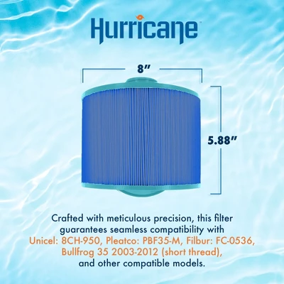 Hurricane Filters Elite Aseptic Cartridge Filter For Unicel: 8CH-950, PBF35-M, Filbur: FC-0536, Bullfrog 35 2003-2012 (Short Thread)