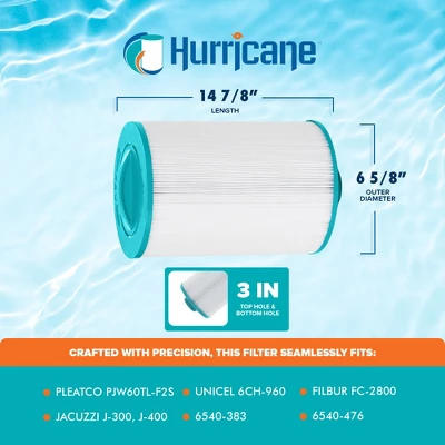 Hurricane HF6H960-01 Advanced Spa Filter Cartridge Replacement Or PJW60TL-F2S, Unicel 6CH-960, Filbur FC-2800, J-300, J-400, 6540-476, 6540-383